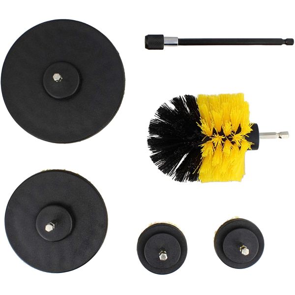 1/4in Drive Nylon Scrubber Drill Attachment Cleaning Brush 5pc Set with 1pc Extension - Red Stiff Bristle