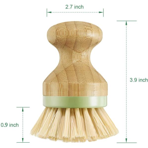 Kitchen Scrub Brush Pot Brush Bamboo Round 3 Packs Mini Dish Brush Natural Scrub Brush